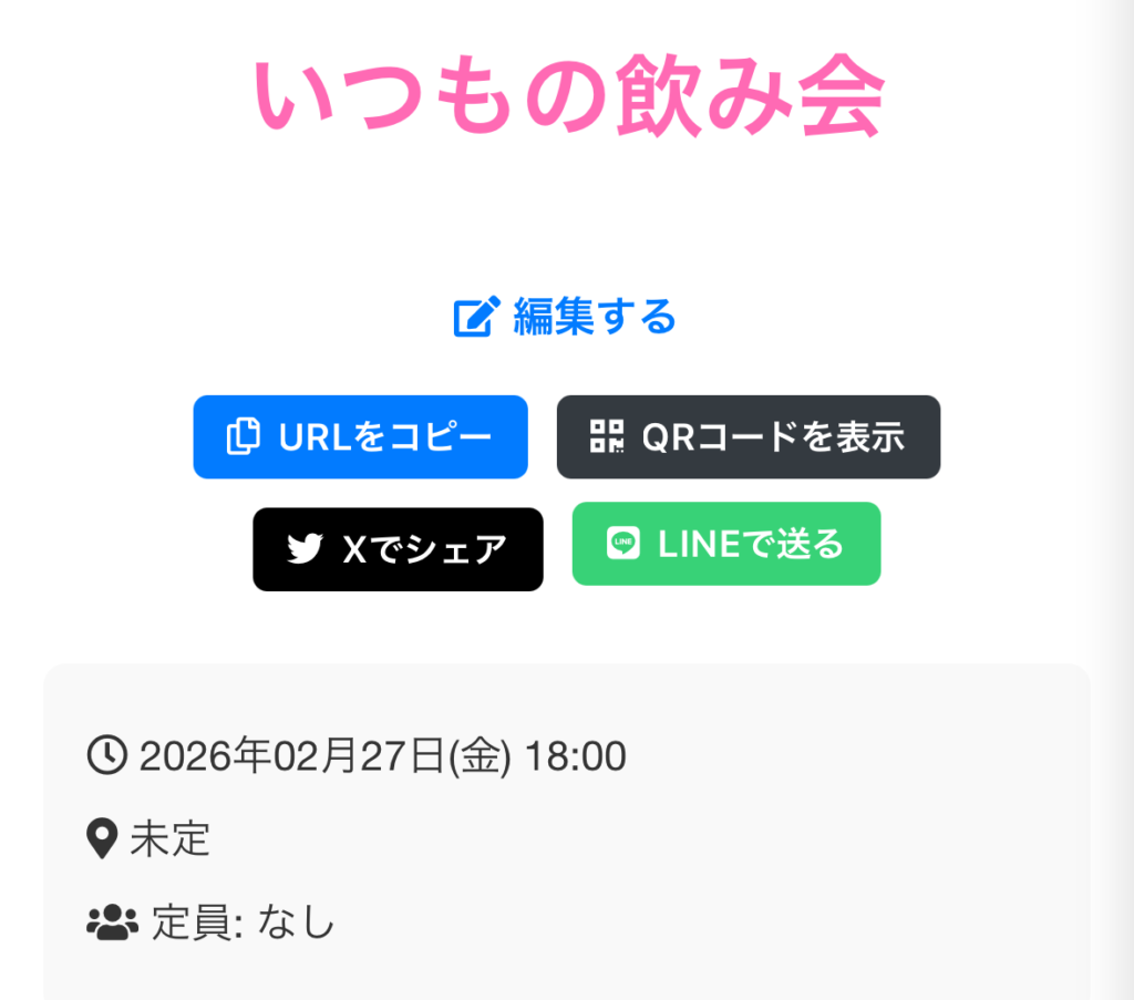 X(旧Twitter)などで広く参加者を募りたい場合は、専用のシェアボタンを使うと便利です。